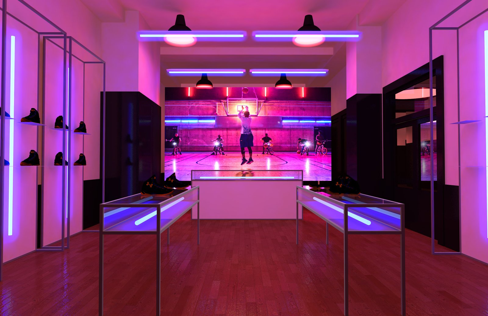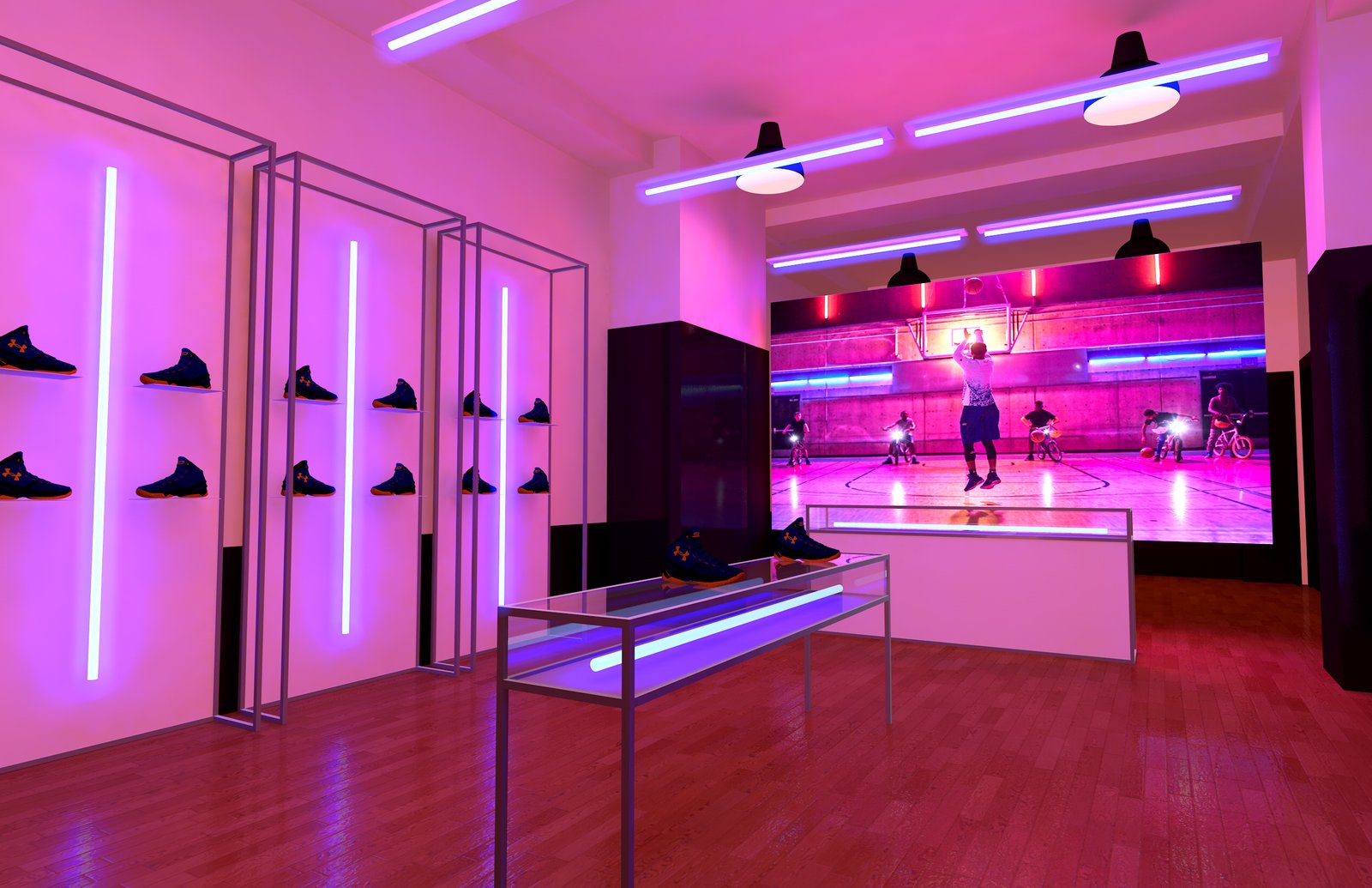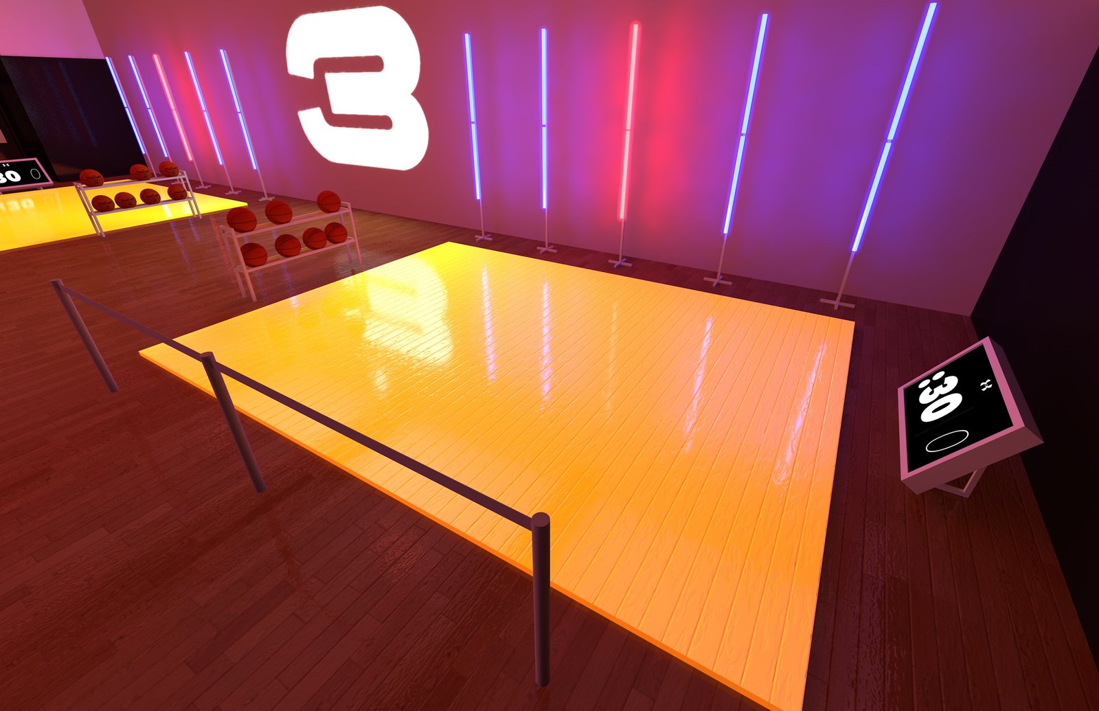 From a pitch using a combination of light box + silicone edge graphics and rear projection to achieve immersive environments.