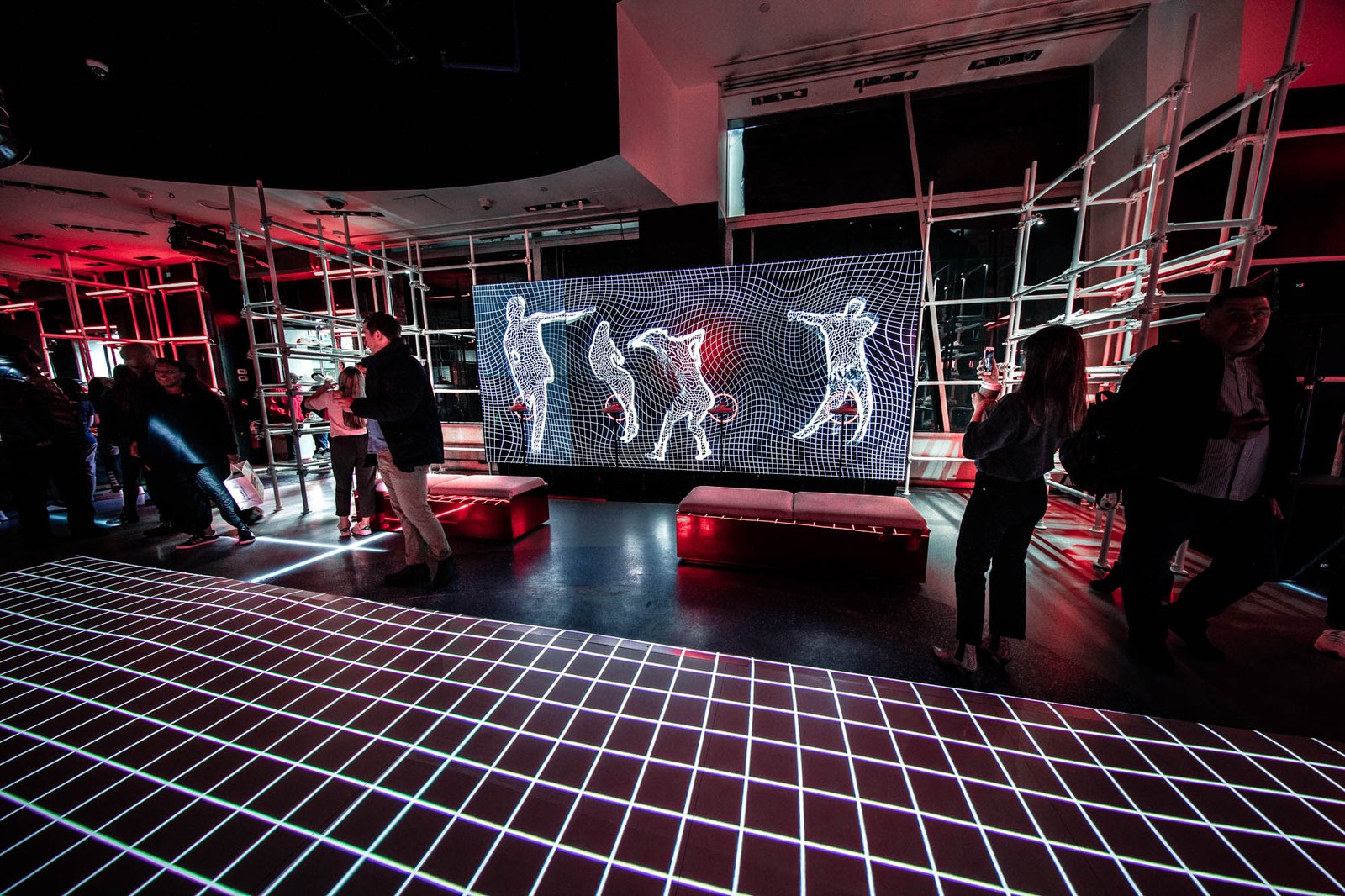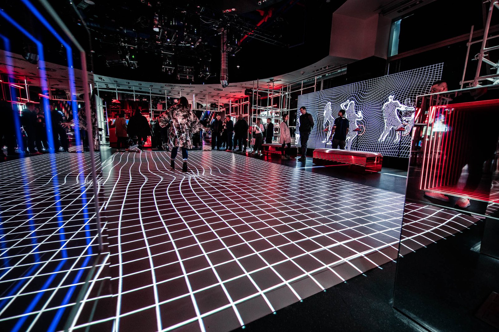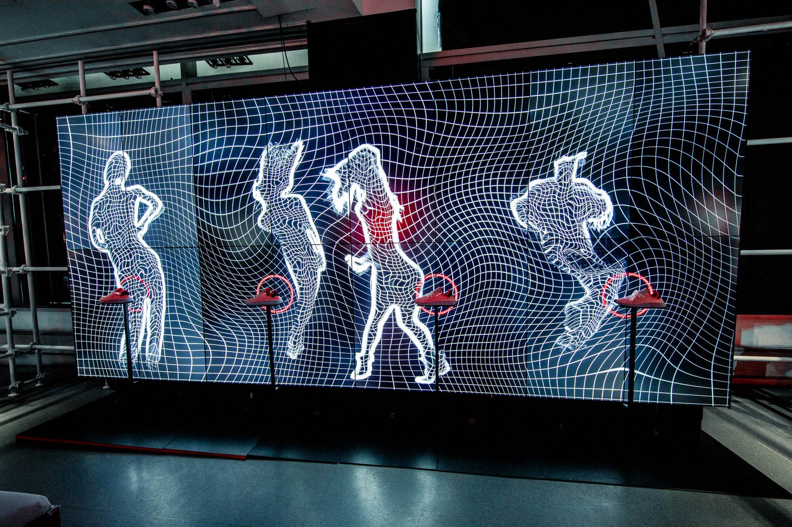 Video mapped Interactive Dance Floor, Accelerometer Interactive Shoes and Video Mapped Artwork.