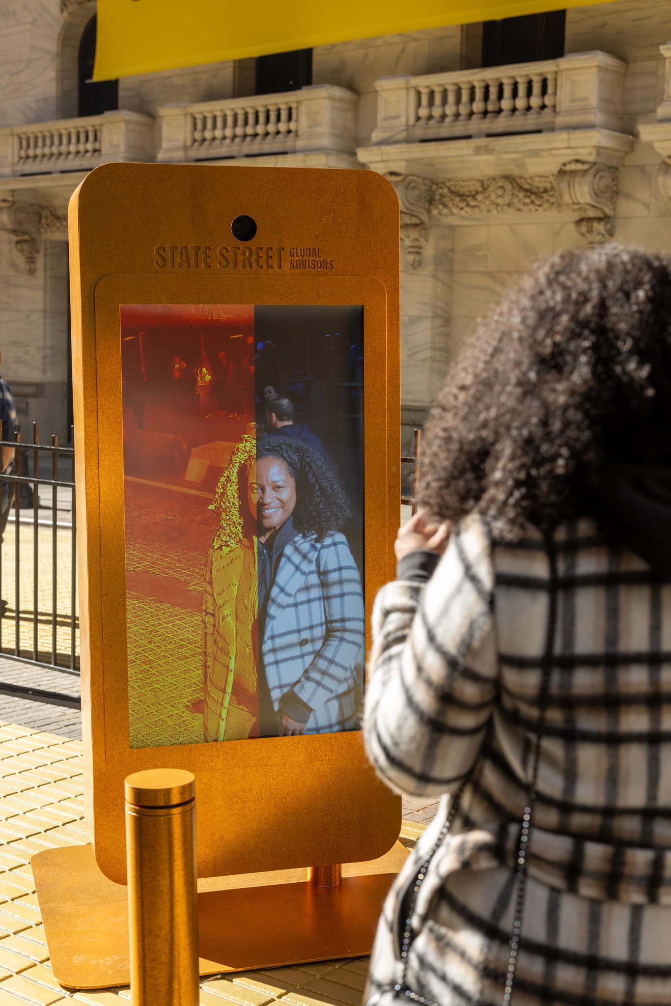 Stepping up to the Gold Road Experience on Wall St., users could transform themselves into gold statues and download their portrait to their mobile device. Powered by custom built BRDG Ai software and integrated into custom designed and fabricated photo booths, the public interacted with the kiosks over 1000 times in one day