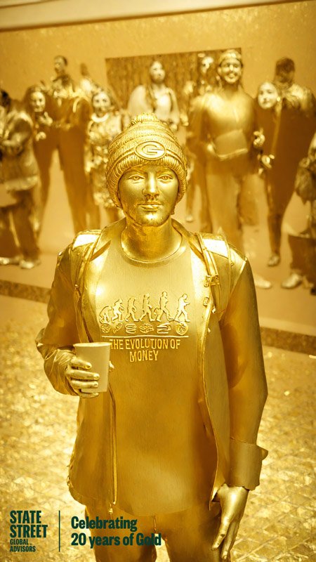 To celebrate the 20 year anniversary of gold ETFs on the stock exchange we worked with McCann NY to transform Wall St in front of the New York City Stock Exchange into Gold.