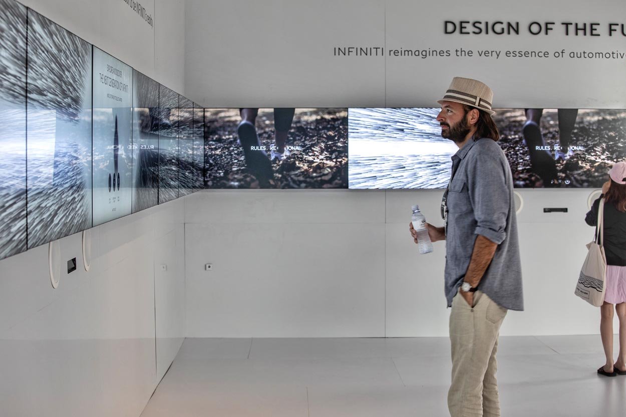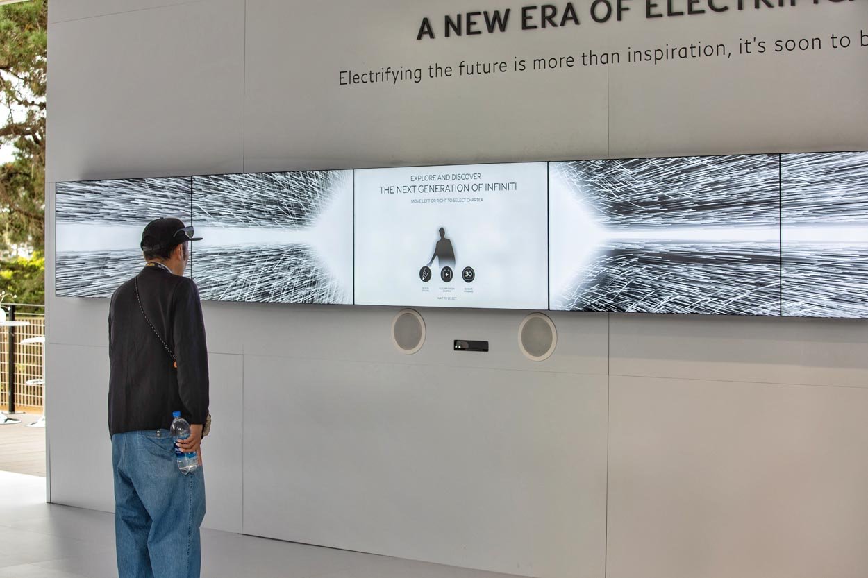 To celebrate the last and next 30 years of INFINITI cars we collaborated with George P Johnson to create “The Pavilion of the Future” at The Pebble Beach Concours d’Elegance, esteemed auto show in California. Inside the Pavilion we created an interactive horizon around the entire perimeter. Users could interact with the horizon and then look beyond the horizon by selecting one of three original videos which tell stories of the INFINITI concept cars on display.