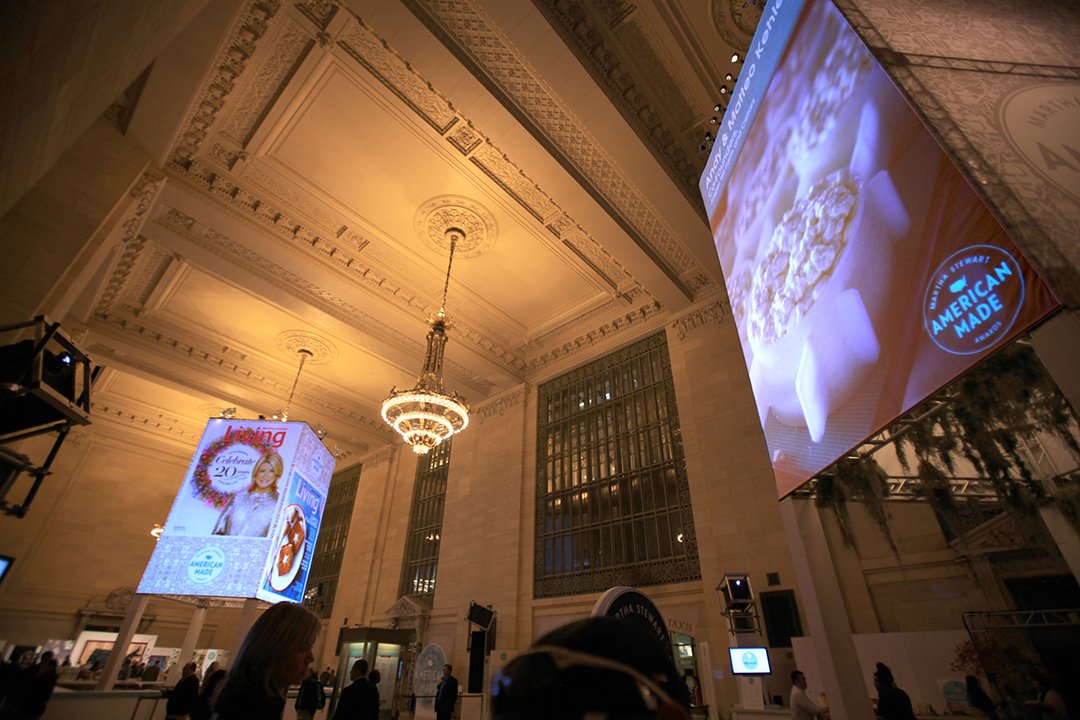 The result, a multimedia tower with layering, transitioning content we helped create alongside Martha’s creative team. Time lapsed logos created from paint, fabric and sand, animated magazine spreads and cover art, and moving collages of rich content all made specially for the towers.