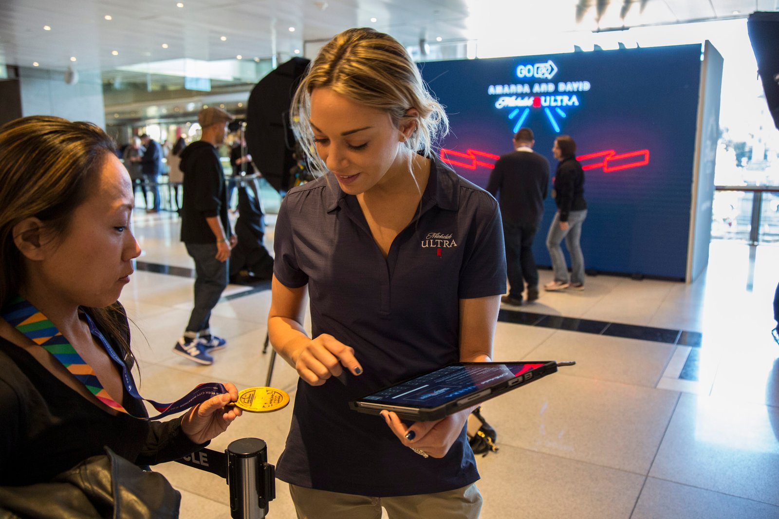 Brand ambassadors took down runner information via our custom tablet program, which updated the LED wall with the runners name and marathon time. Our 2.6mm LED wall was used as a backdrop for the photo booth which would text your image to you.