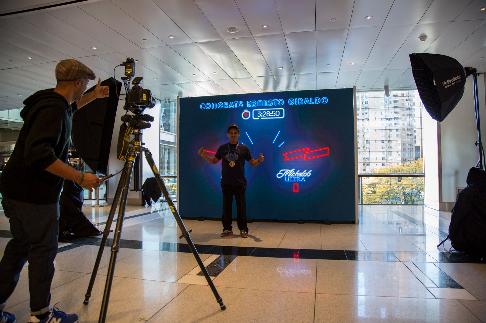 With only an eight day lead time, we worked furiously with Agency AKQA to deliver this end-of-the-marathon photo op for the runners.