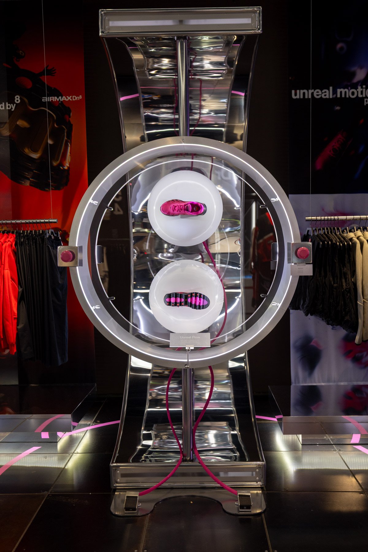 We partnered with Nike to bring the Air Max Dn8 story to life through 8 fully interactive experiments, each designed to explore a core piece of Dn8’s breakthrough technology; Pneumatics. Video, Proximity sensors. Dials. Accelerometers.