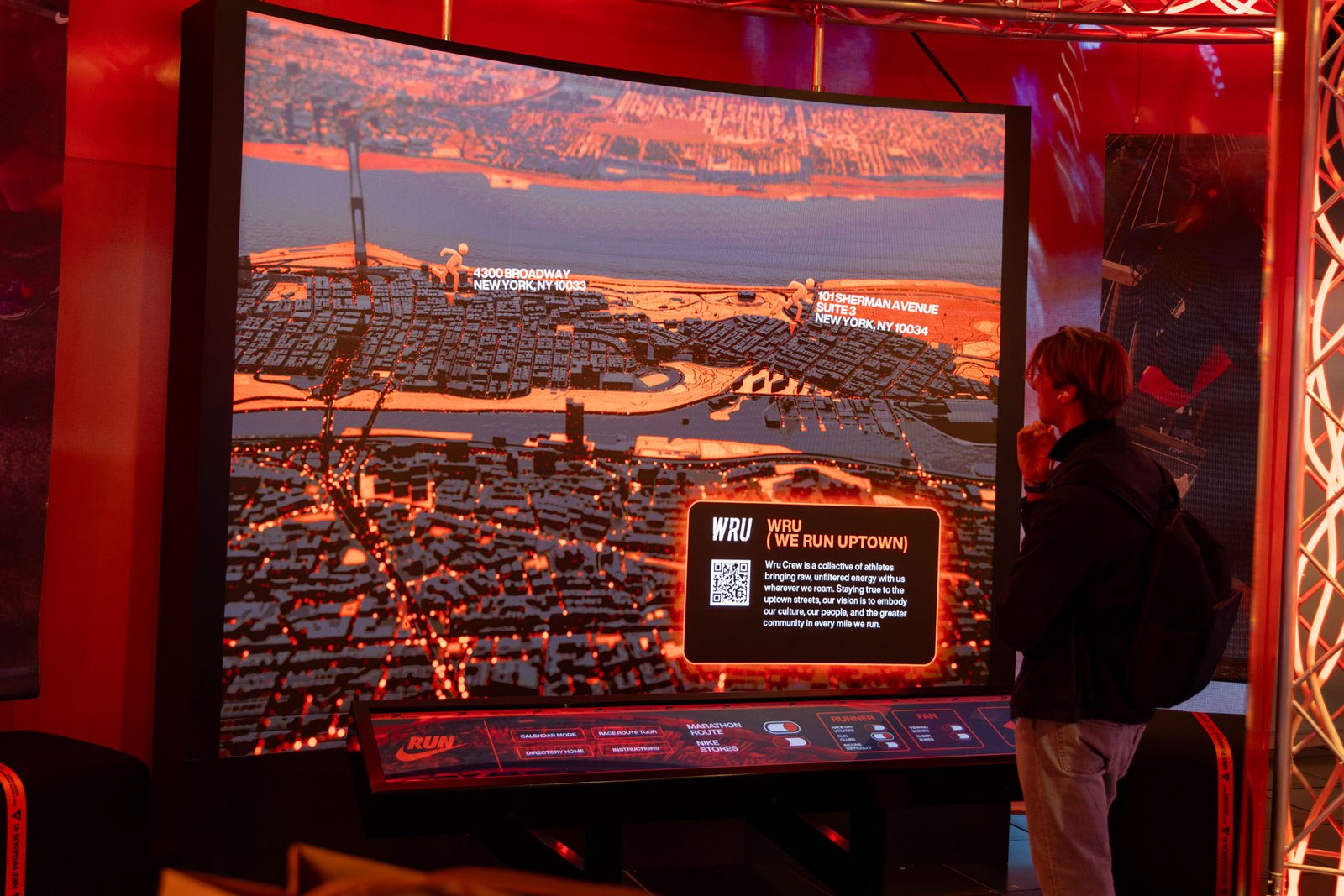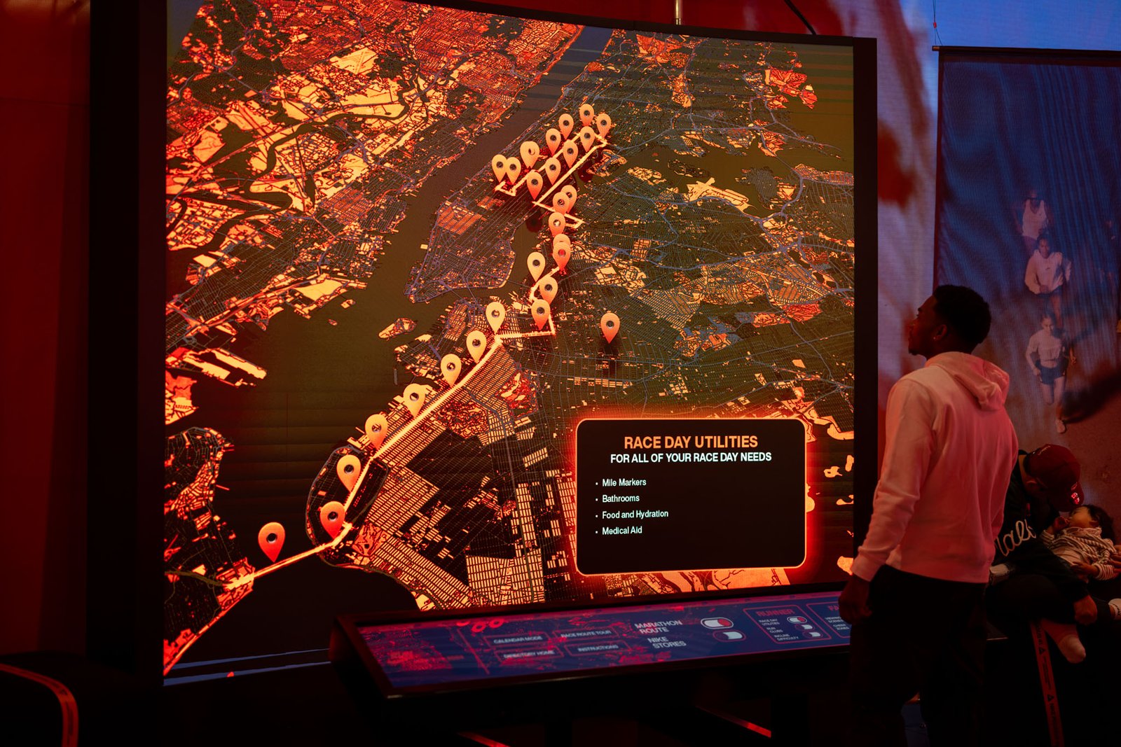 At Nike’s NYC Flagship store, House of Innovation, we designed, programmed and installed this interactive guide for both Marathon Racers and Attendees. This interactive experience allowed users to navigate. 3D model of the NYC Marathon Route and explore landmarks, running clubs, Nike race week events and of course all the important location and dates surrounding the NYC Marathon Race.
