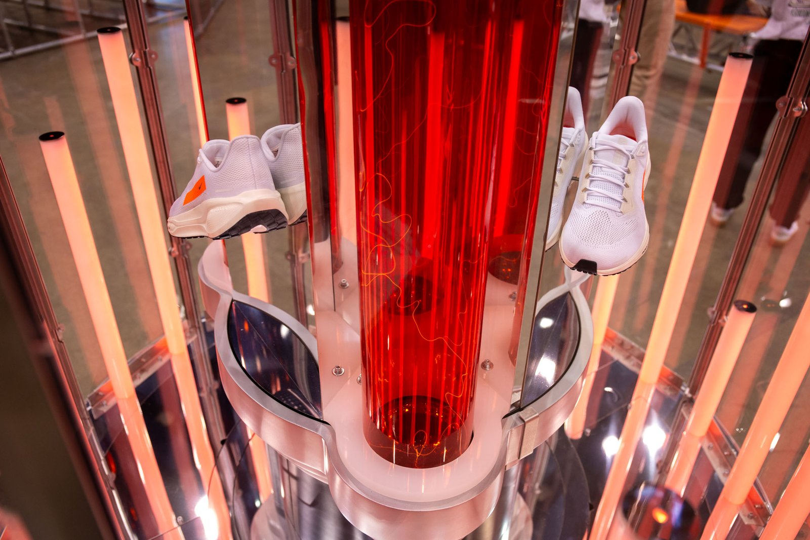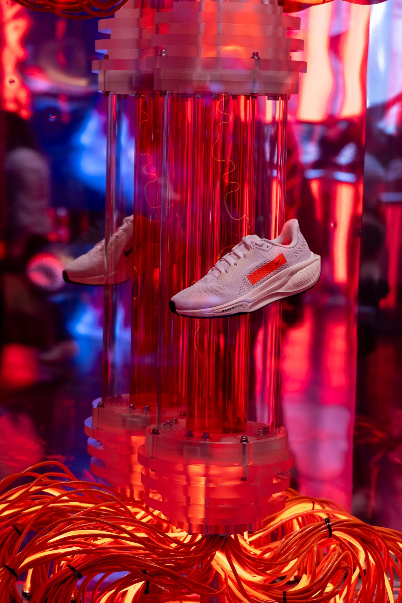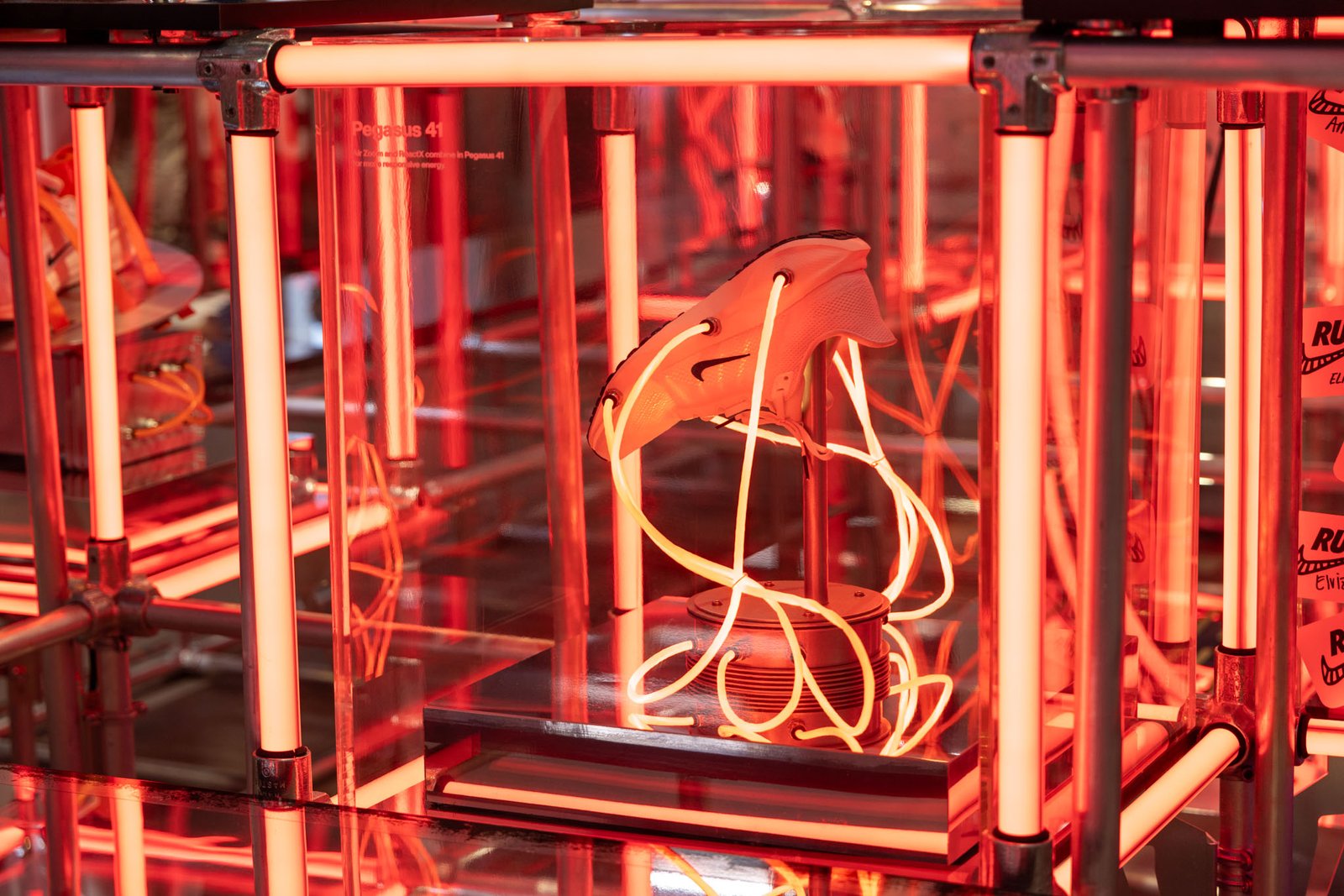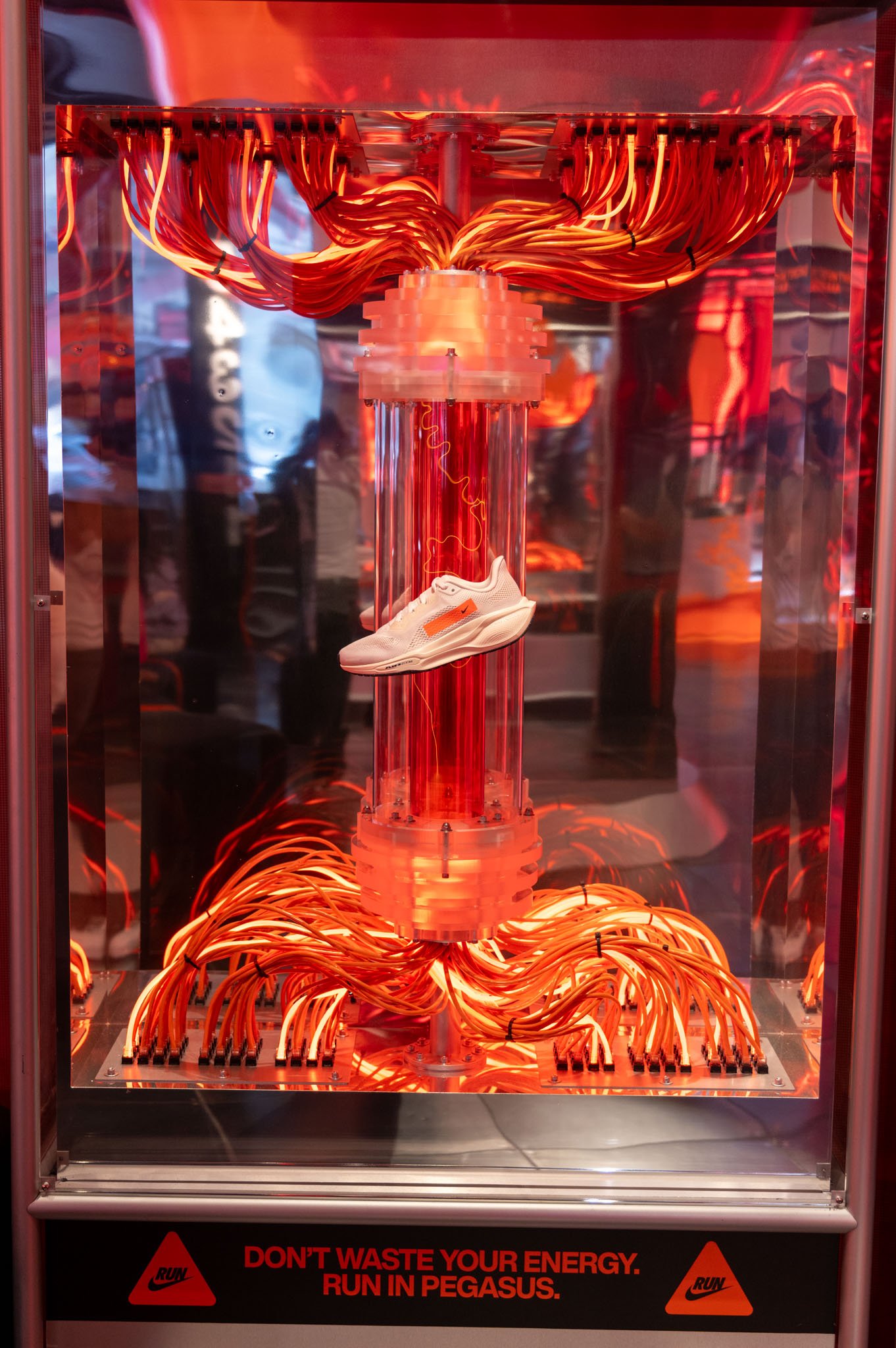 A pinnacle sculpture was built and showcased at the Chicago Marathon and then Miami Marathon. This sculpture included 5′ custom plasma tubes set in an array of LED light tubes and showcasing the Nike Pegasus 41.