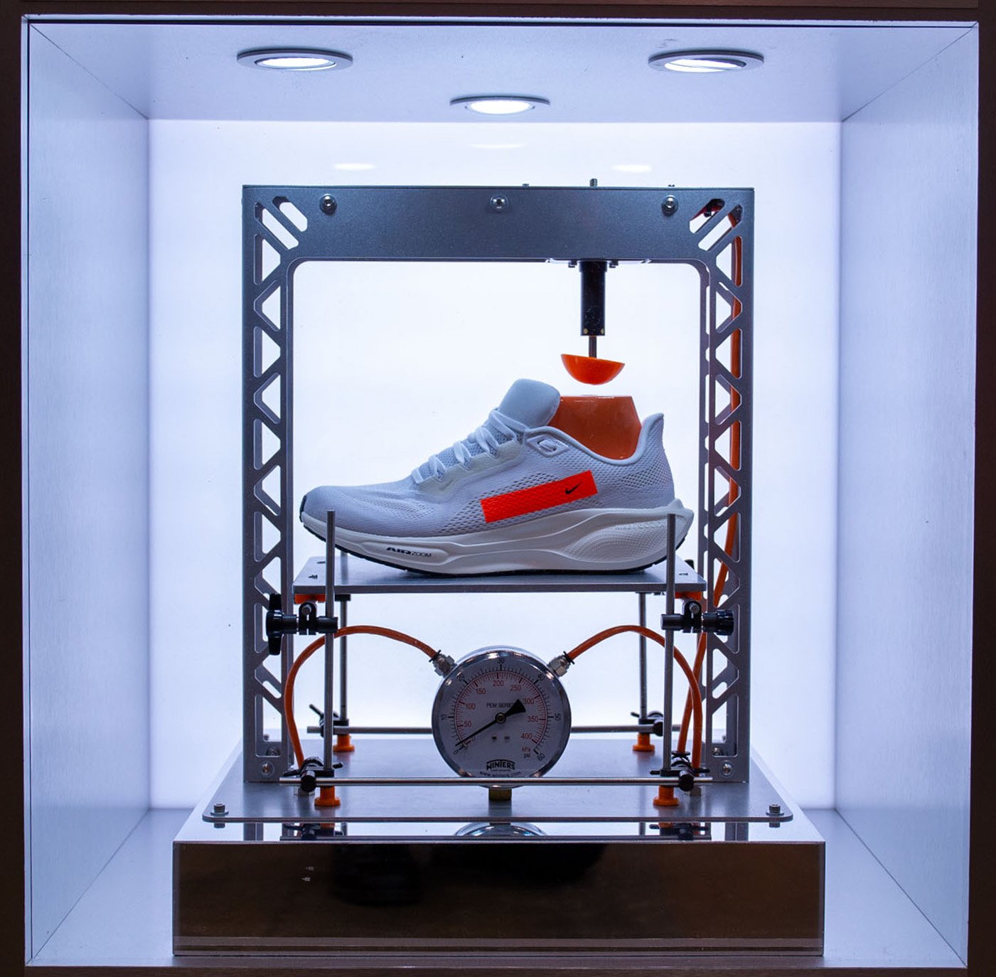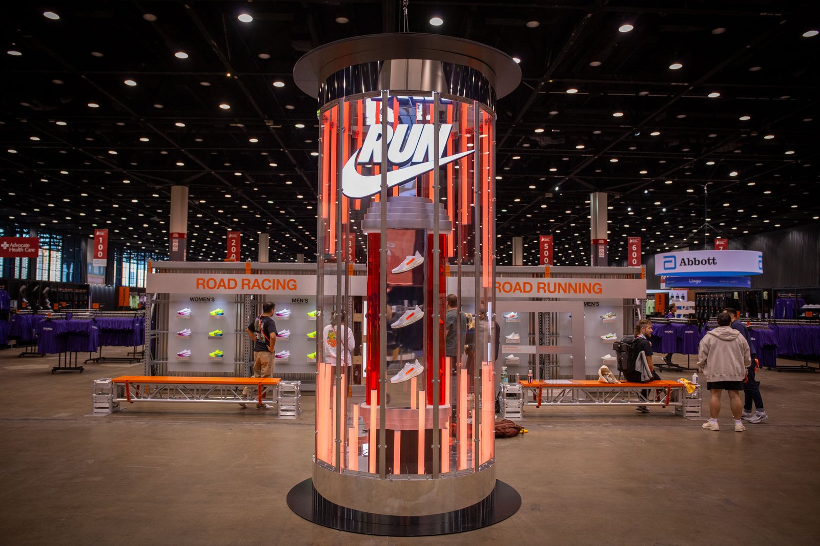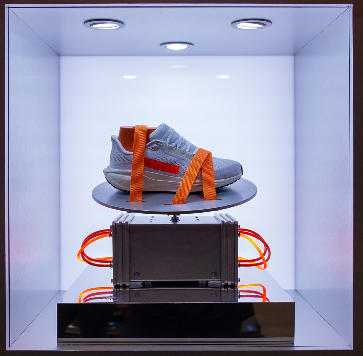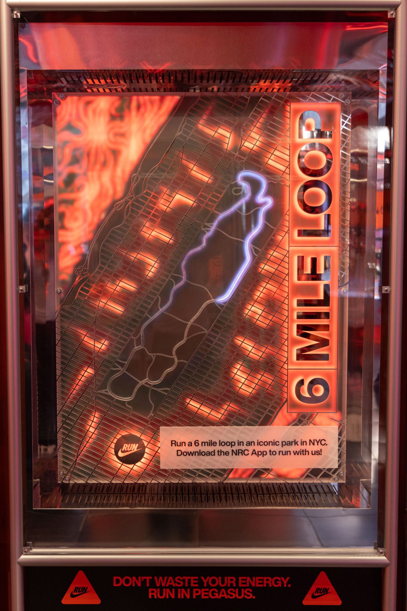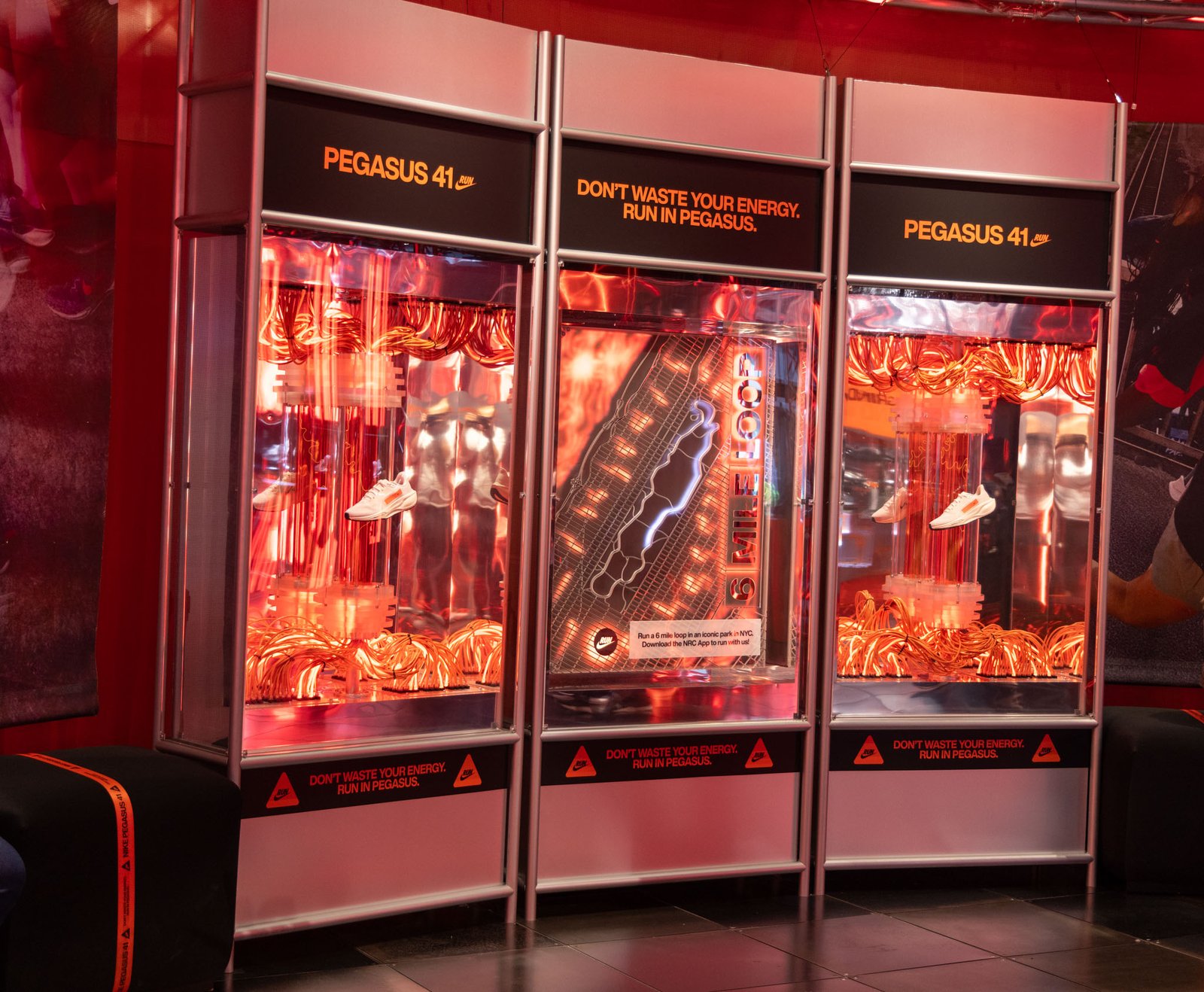 A pinnacle sculpture was built and showcased at the Chicago Marathon and then Miami Marathon. This sculpture included 5′ custom plasma tubes set in an array of LED light tubes and showcasing the Nike Pegasus 41.